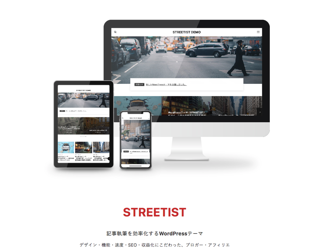 非常に高機能でアフィリエイトをする上での機能が充実しています。ですので検索上位のサイトではaffinger5で作られたサイトをよく見かけます。このテーマなら選択してミスないでしょう。 |